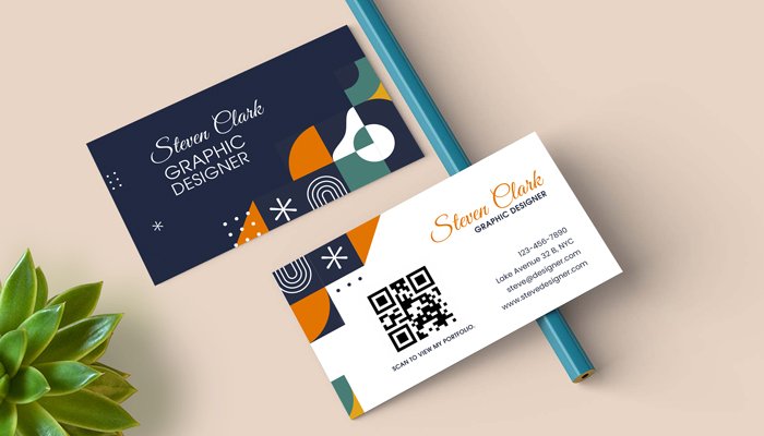 The most common use for a business card is to pass along a quick tidbit of your contact information. Have you ever thought of adding a QR code to your traditional business card? Making your business card interactive encourages the recipient to participate and dive deeper into what you offer, as you can include things like a direct, scannable link to your website or social media accounts, and also gives them a unique factor to remember you by. (Pssst – you can easily add a QR code to any design using our online designer!)